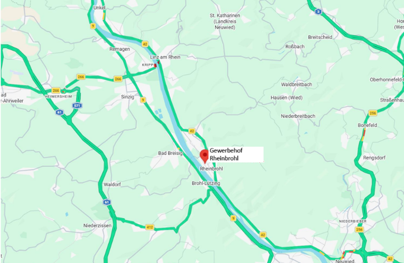 Das Objekt befindet sich in einem kleinen, gewachsenen Gewerbegebiet zwischen Bad Hönningen und Rheinbrohl.